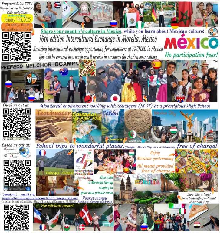 The 16th edition of a wonderful, successful program where you share your country's culture while you learn about Mexican culture.